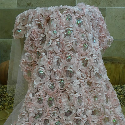 3D Rose Wedding Fabric Flowers Rug zachte bruidsjurk veer kanten stof met pailletten zacht veerkant gecombineerd met glanzende pailletten, de bloemen zijn driedimensionaal en vol, met een delicate en luxueuze aanraking. Het is geschikt voor bruidsjurken, avondjurken, sluiers en bruiloftdecoraties, die een romantische en elegant tintje toevoegen. Met een zeer elastisch en ademend ontwerp kan het worden gesneden als dat nodig is en is het een ideale keuze voor high-end aangepaste huwelijksvoorraden.