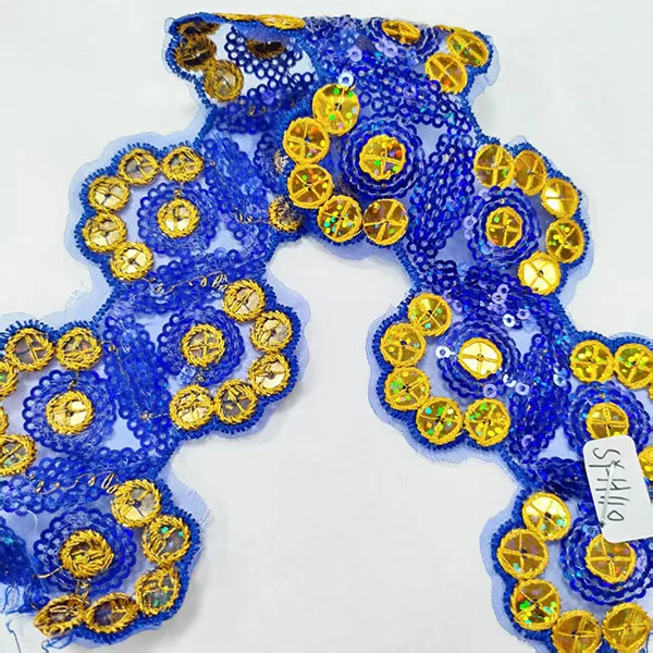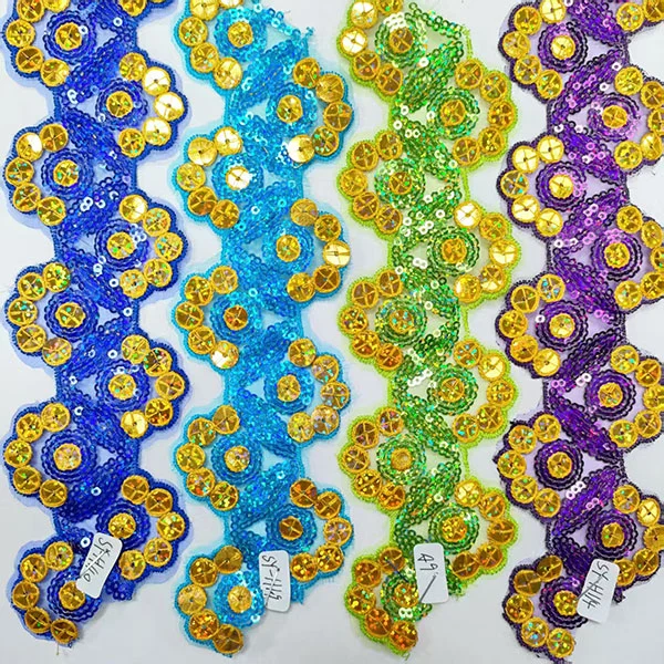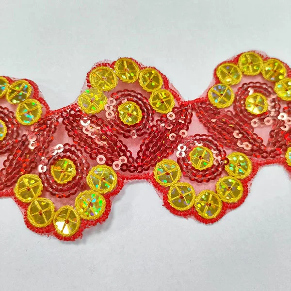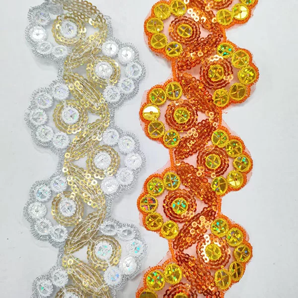 Het borduurwerk voegt gedetailleerde patronen of ontwerpen toe aan de trim, terwijl de veelkleurige pailletten een oogverblindend en opvallend element bieden. De maasbasis geeft het trimmen een lichtgewicht en luchtige kwaliteit, waardoor het perfect is voor het toevoegen van ingewikkelde details zonder bulk toe te voegen.