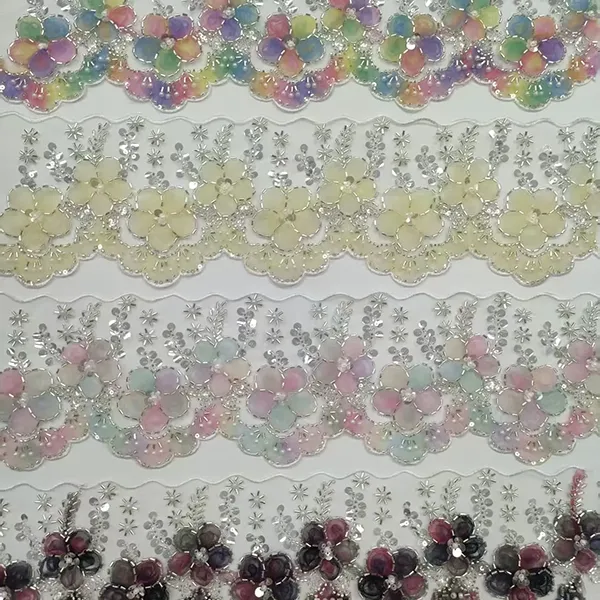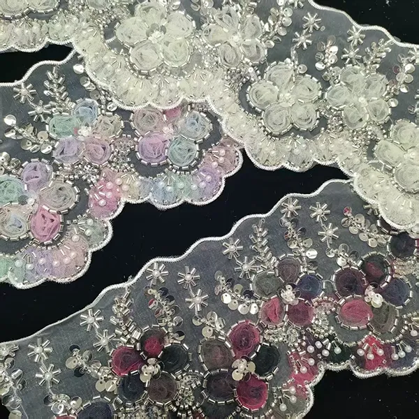 | Product | Veelkleurig geborduurd kant met 3D mesh bloemen lint kralen buis barcode borduurwerk kant | ||