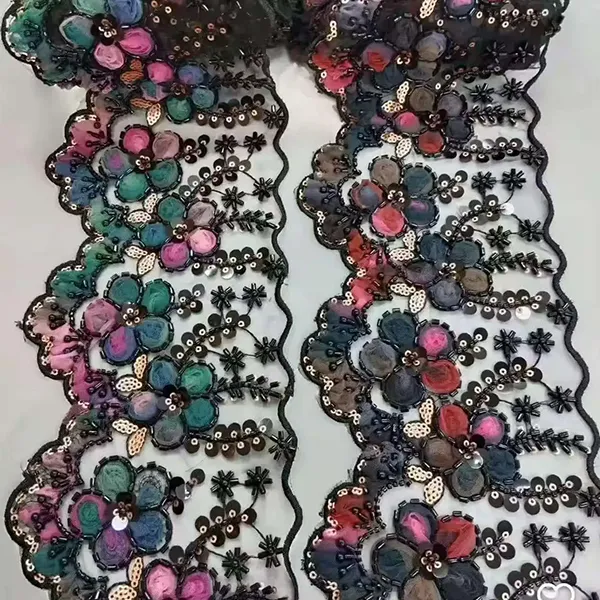 Veelkleurig geborduurd kant met 3D mesh bloemen lint kralen buis barcode borduurwerk kant