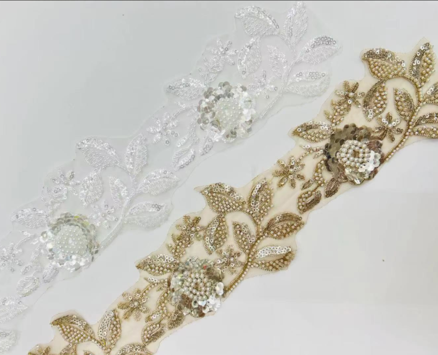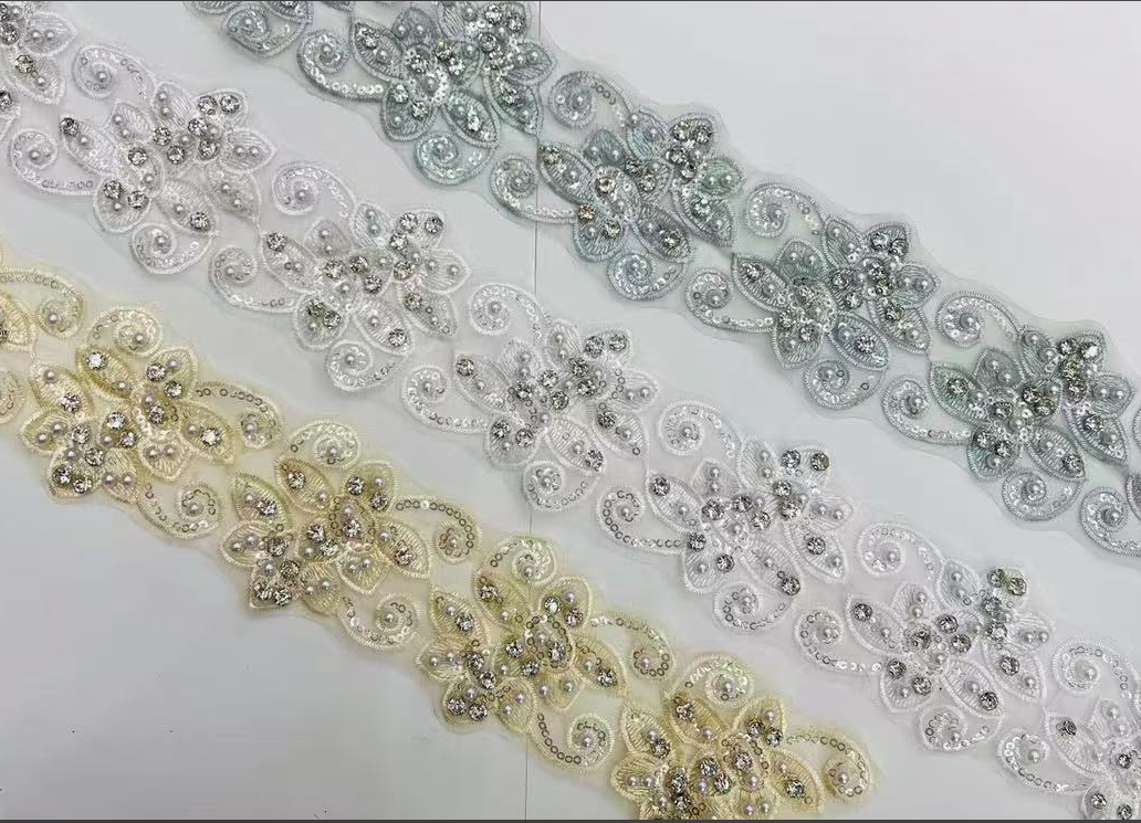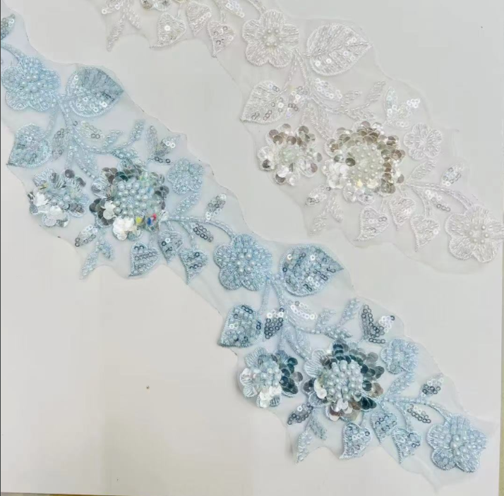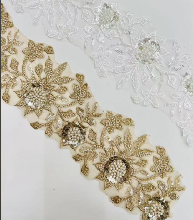 Nieuwe aankomst Decoratieve kleding naaien mooie gevlochten lovertjes parel kralen kantafwerking Het neemt een combinatieontwerp aan van driedimensionaal touwweven, glanzende pailletten en glanzende kralen, met rijke lagen en een delicate touch. Het is geschikt voor high-end decoraties zoals haute couture avondjurken, trouwjurken, avondtassen en hoofddeksels, waardoor de pracht van individuele items gemakkelijk wordt verbeterd.