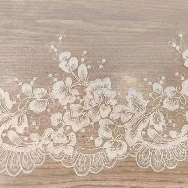 Klassieke prachtige mesh polyester geborduurd kant voor dameskleding met ingewikkelde geborduurde bloemenpatronen, perfect voor dames formalwear, bruidsmode en delicate overlays. De lichtgewicht maar duurzame stof biedt een sierlijke drapeer met tijdloze verfijning. Ideaal voor jurken, mouwen, sluiers en lingerie. Beschikbaar in klassiek ivoor, zwart en wit. Handwas of zachte machinecyclus aanbevolen. Een premium keuze voor couture -ontwerpen en speciale gelegenheidskleding. Verkocht door de tuin bij leveranciers van specialiteiten.